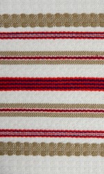 | Tárgyleírás | A színes alapú, bordűrös szádán, az elfogyó csíkritmusra épül, a fő mintaként megjelenő, négyes-kettes-és egyes levélminta, amely az alap színnel megegyező, ripsz csíkok közötti azsúrral és nyers ripsz csíkokkal folytatódik. | |||