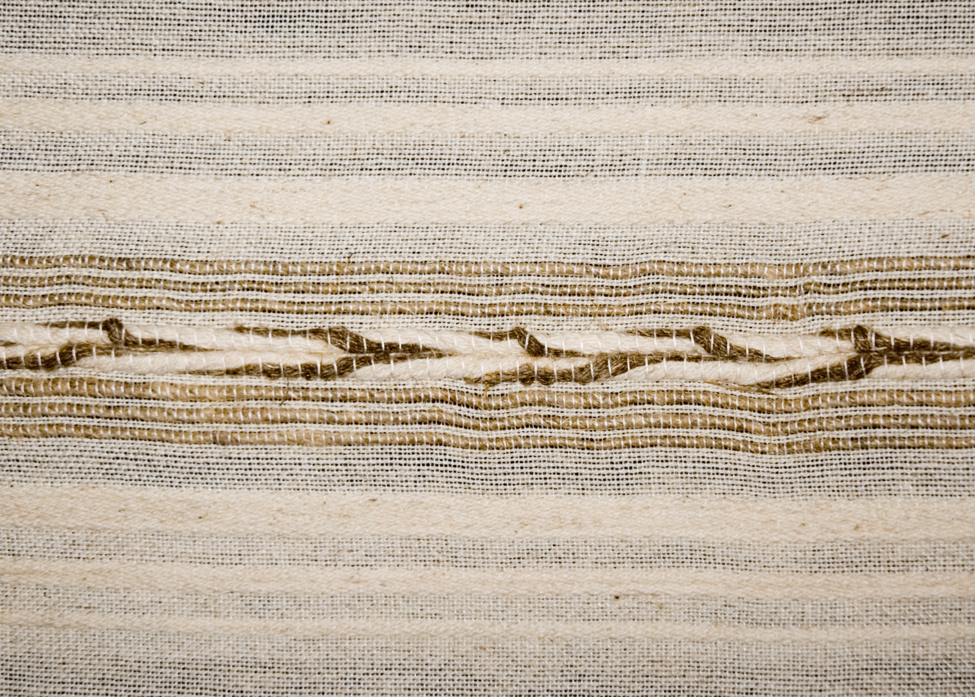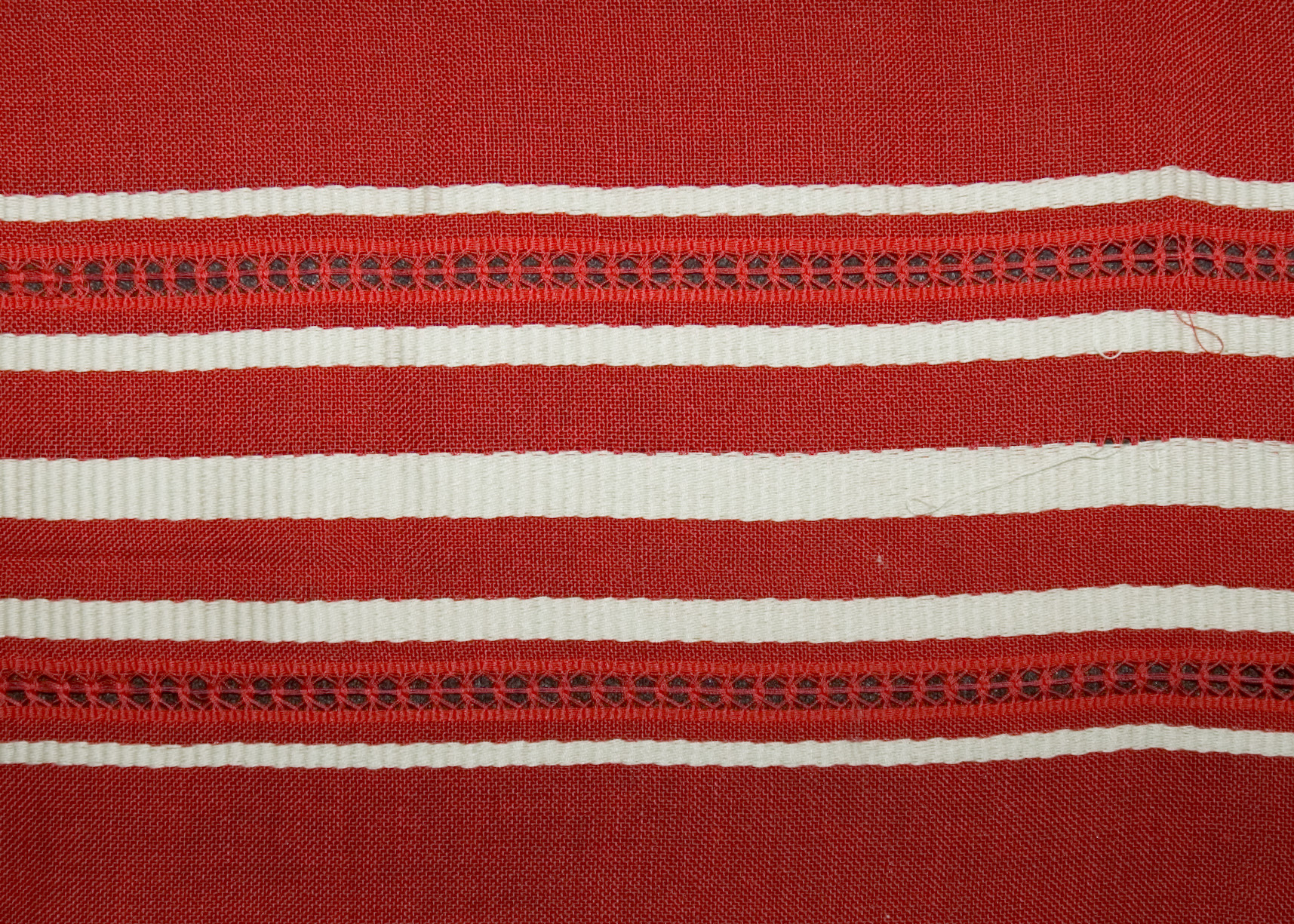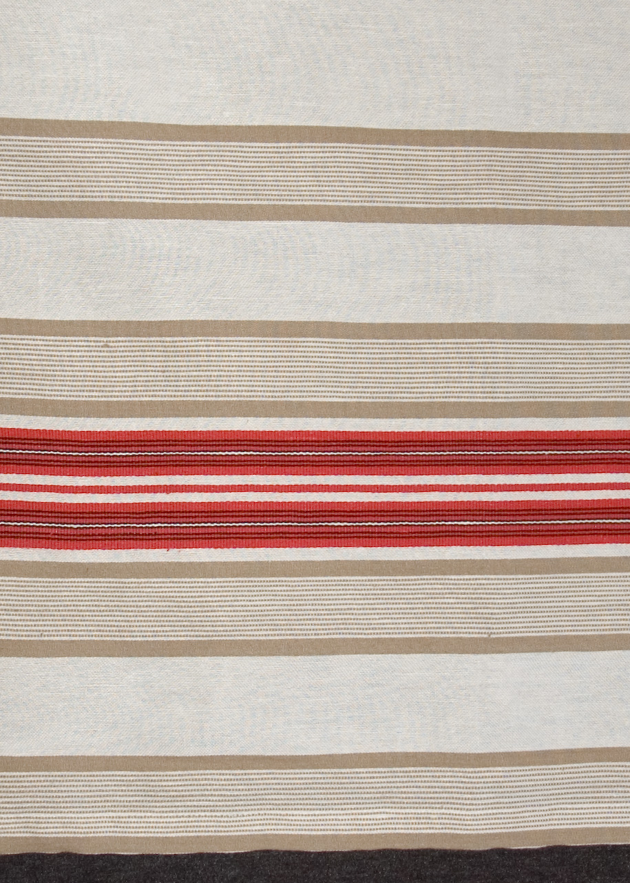 | Tárgyleírás | Az abrosz két végét súlyosabb, szürke-piros csíkritmus díszíti. | |||
