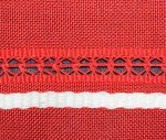 | Tárgyleírás | A színes száda felületét nyers ripsz csík, közötte színes ripsz csík közé szedett azsúr tagol. | |||