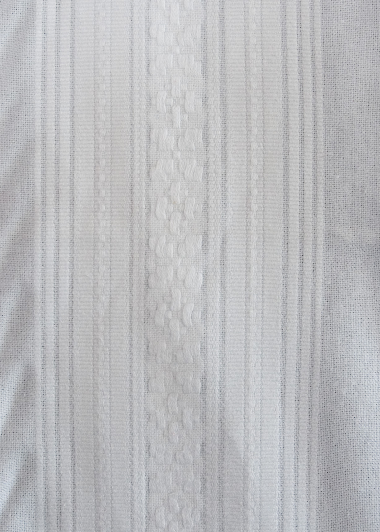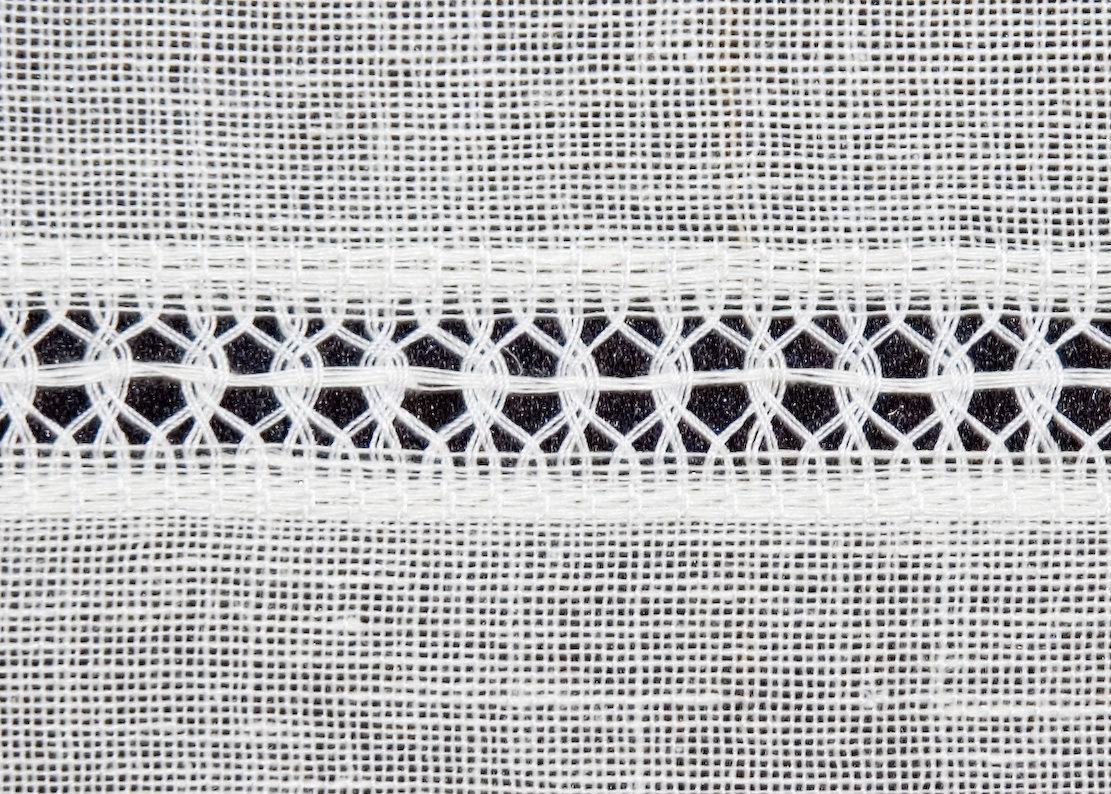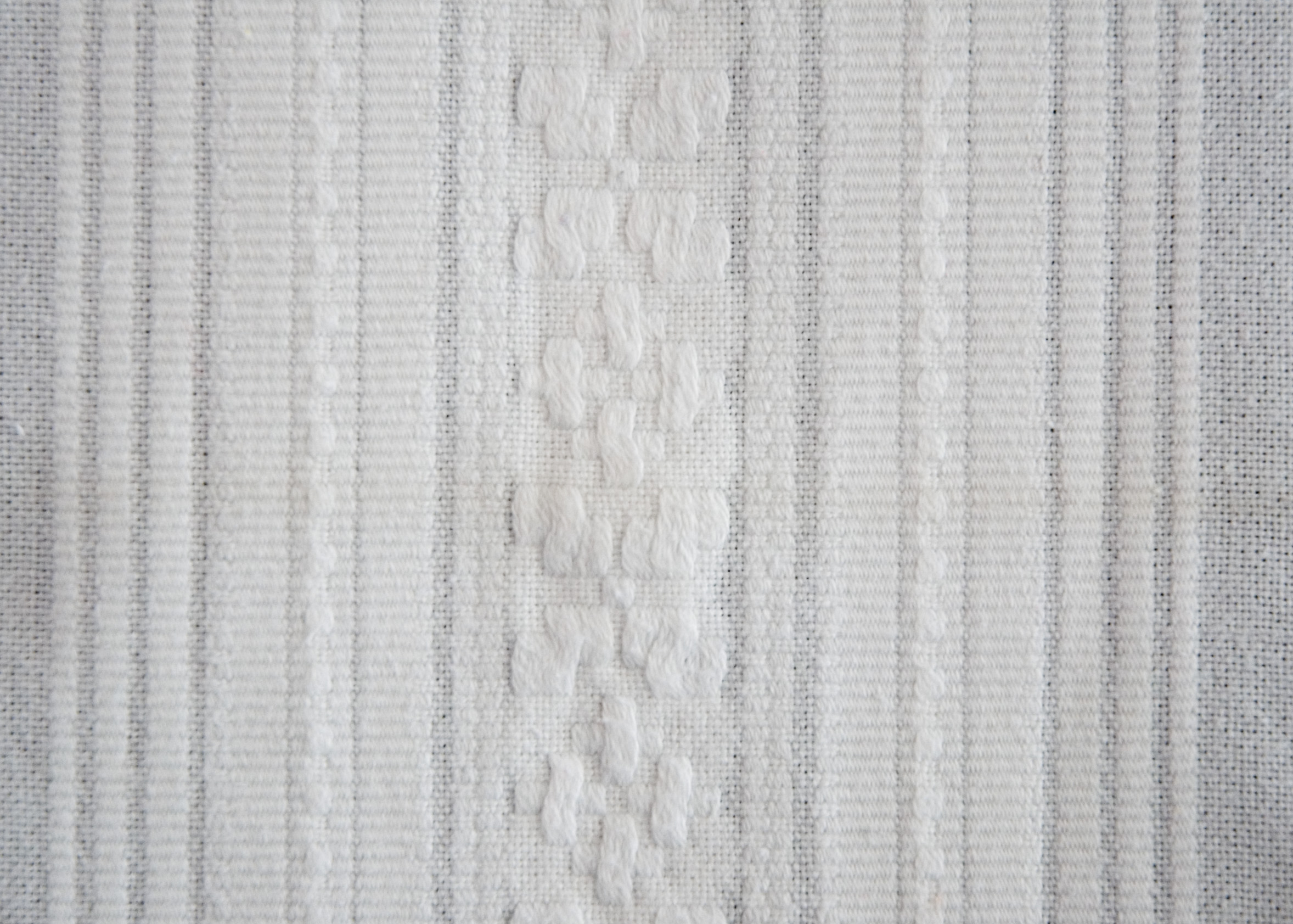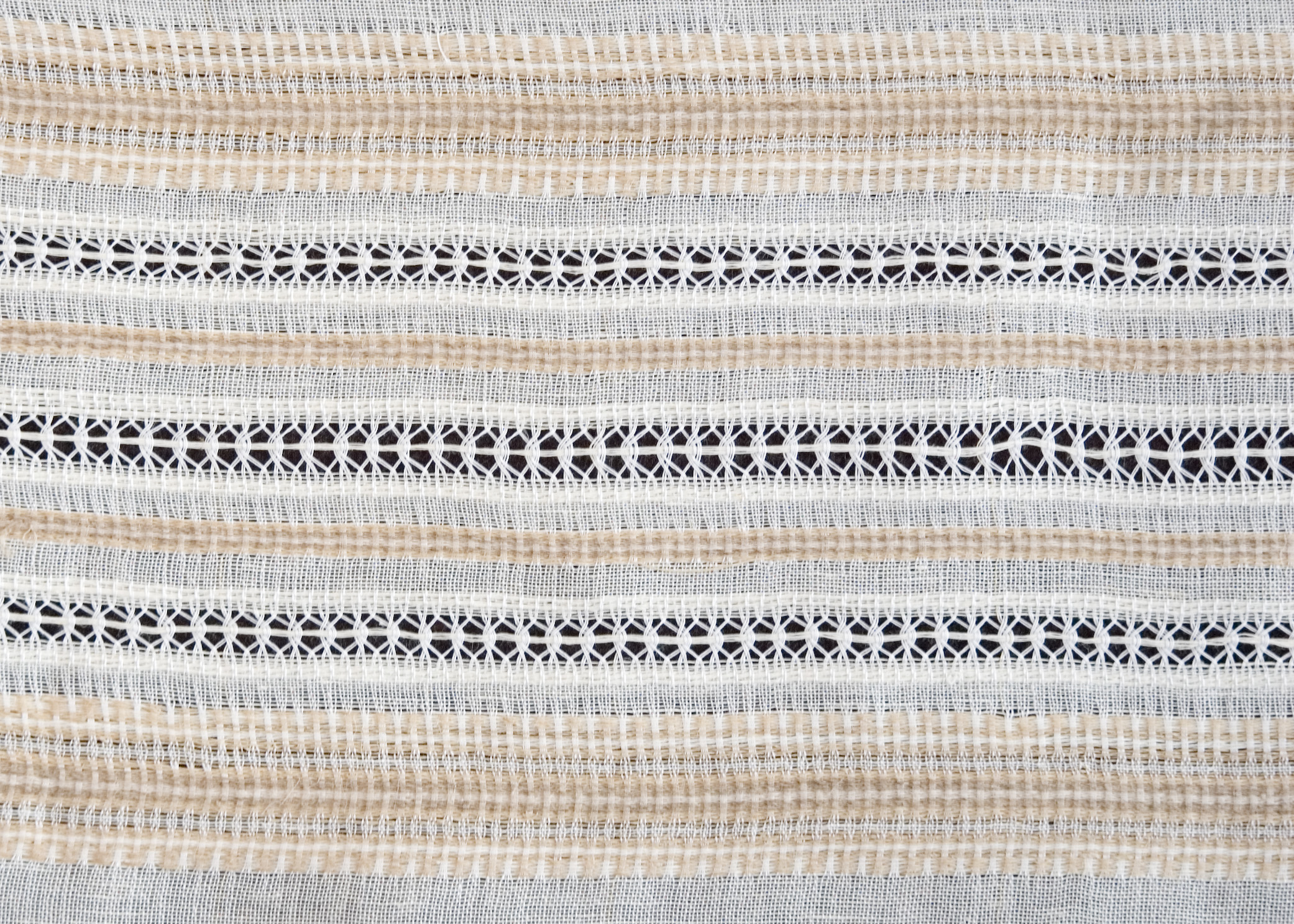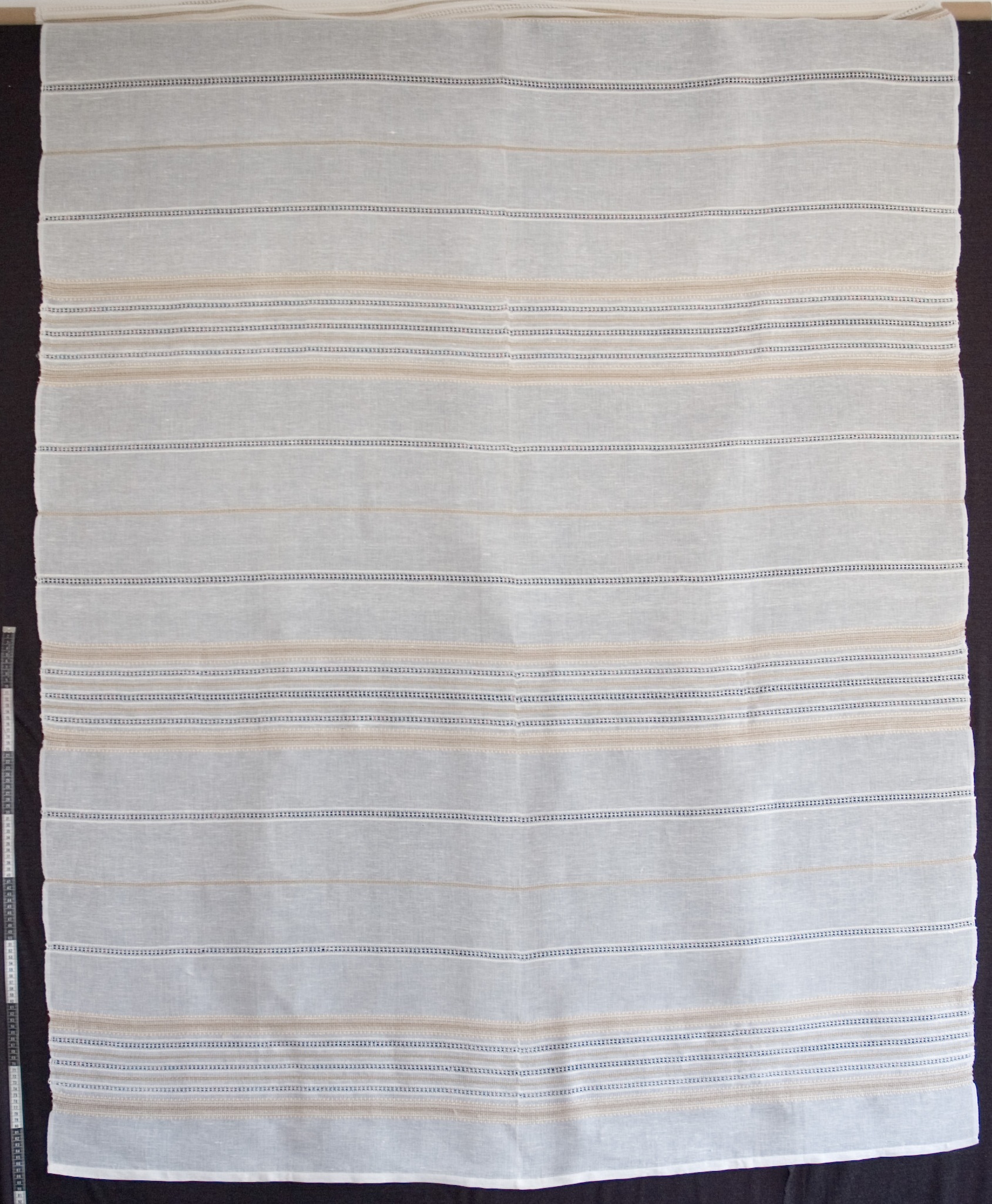 | Tárgyleírás | A len alapú szádát ripsz csíkkal kiemelt háromas és egyes kereszt- azsúrok díszítik | |||