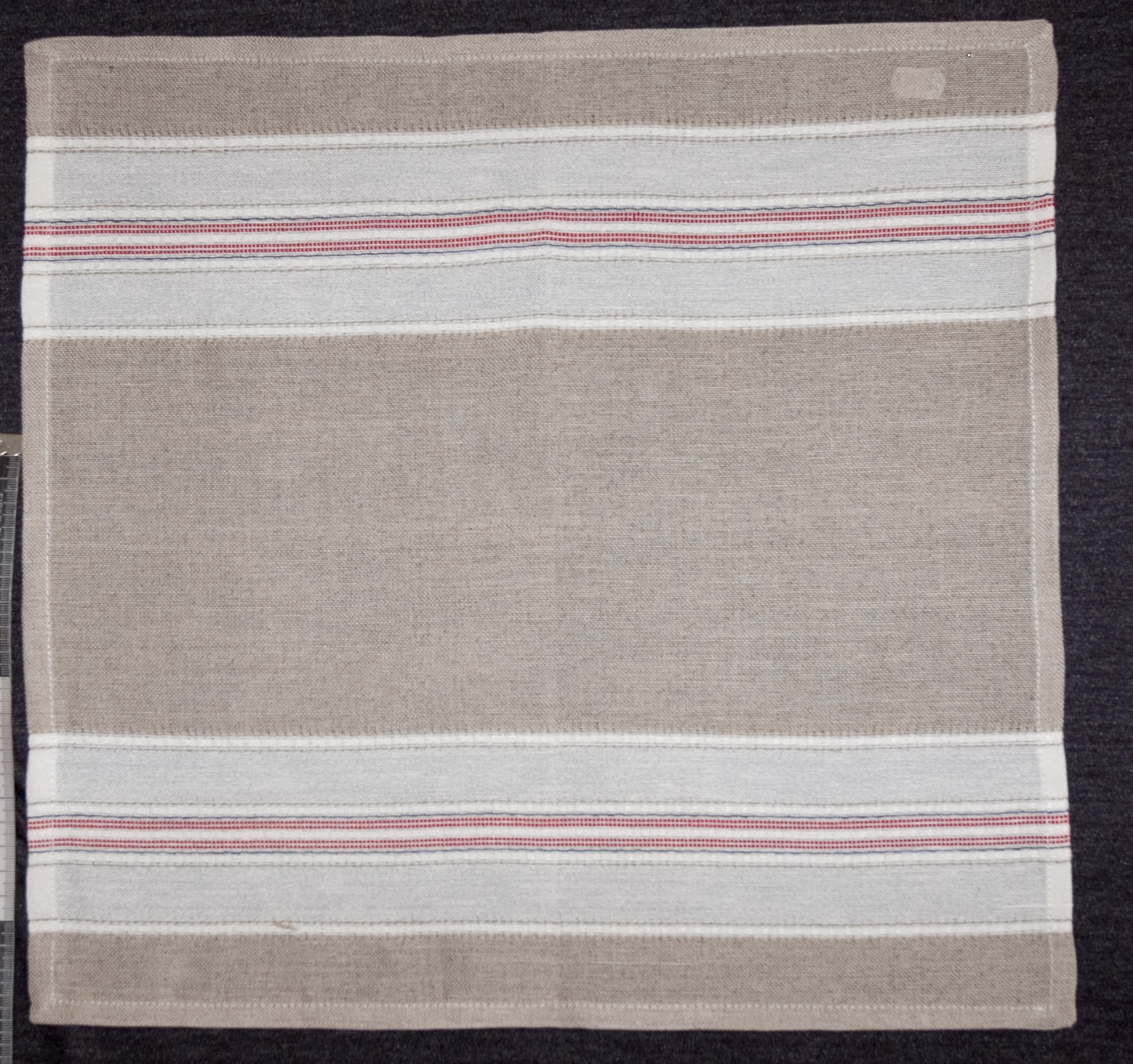 | Tárgyleírás | A szalvéta két oldalát színes ripsz csík díszíti | |||