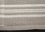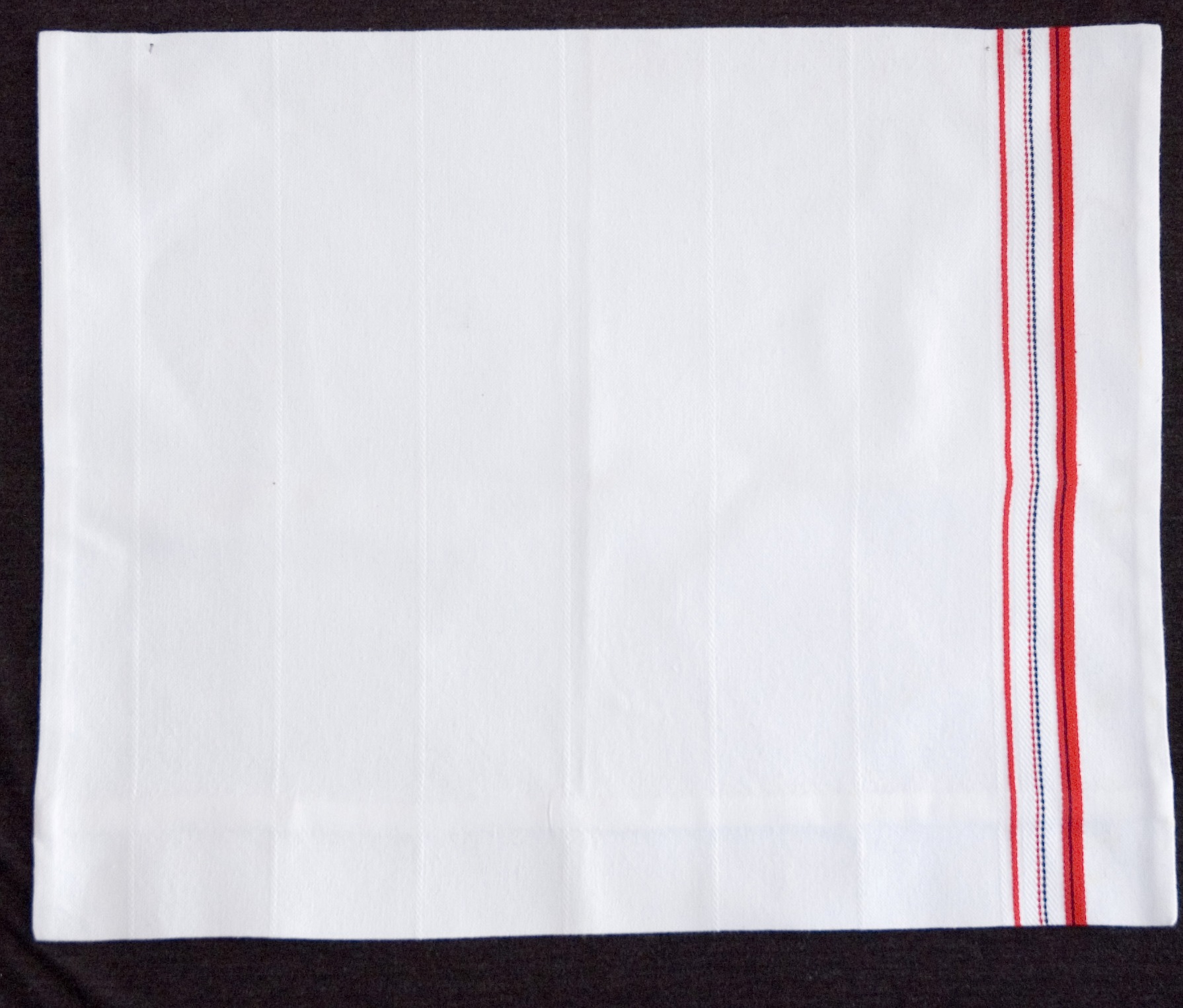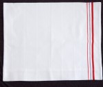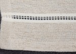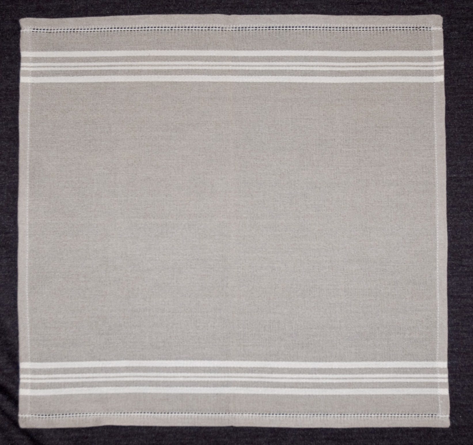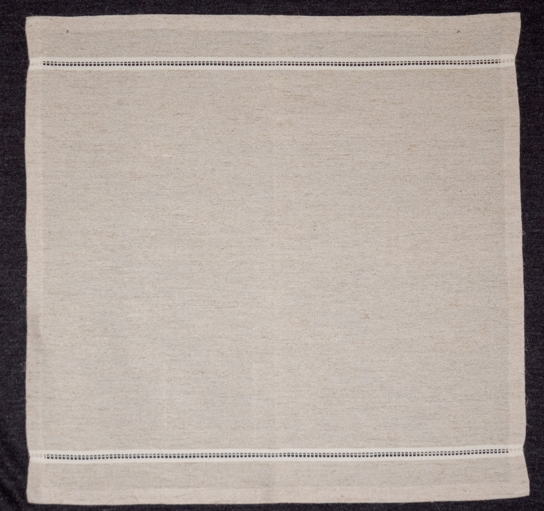 | Tárgyleírás | A szalvéta két oldaát 3-3 sávoly csík díszíti. A szegése azsúrral történik. | |||