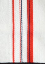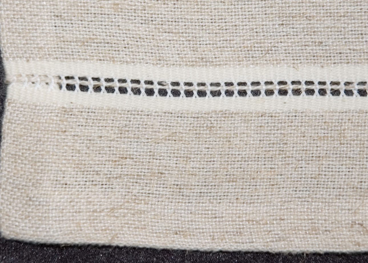 | Tárgyleírás | A len anyagból készült alátét egyik oldalát piros-kék ripsz csík díszíti. | |||