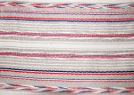 Tárgyleírás: | Len alapu piros-kék-szürke mintázatú. Bordóben sávoly és piros-fehér-kék rozmaring. Két végén hangsulyos szines mintát középen fehér sávoly csíkok. |