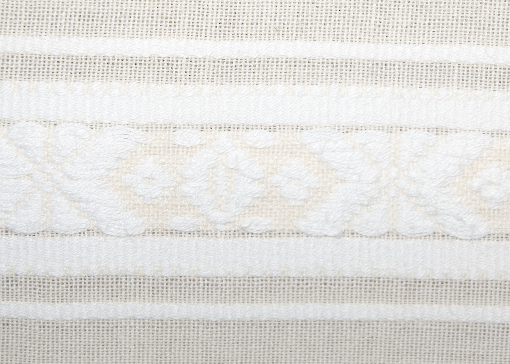 Díszítmény: | szedett minta, szövött csík, azsúr |