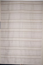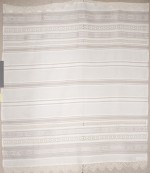 | Tárgyleírás | 140x180 cm fehér len alapú, szürke len szedett mintás, horgolt szélű, subrikás teritő az Országos Szőttespályázat díjnyertes alkotása. | |||