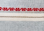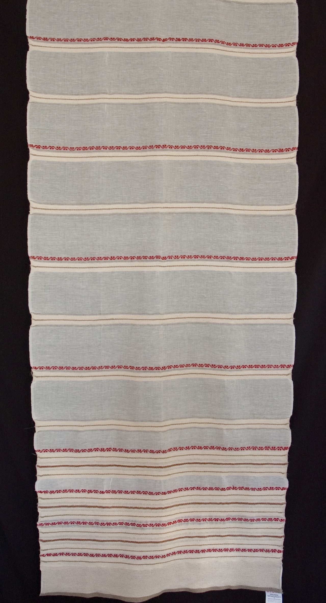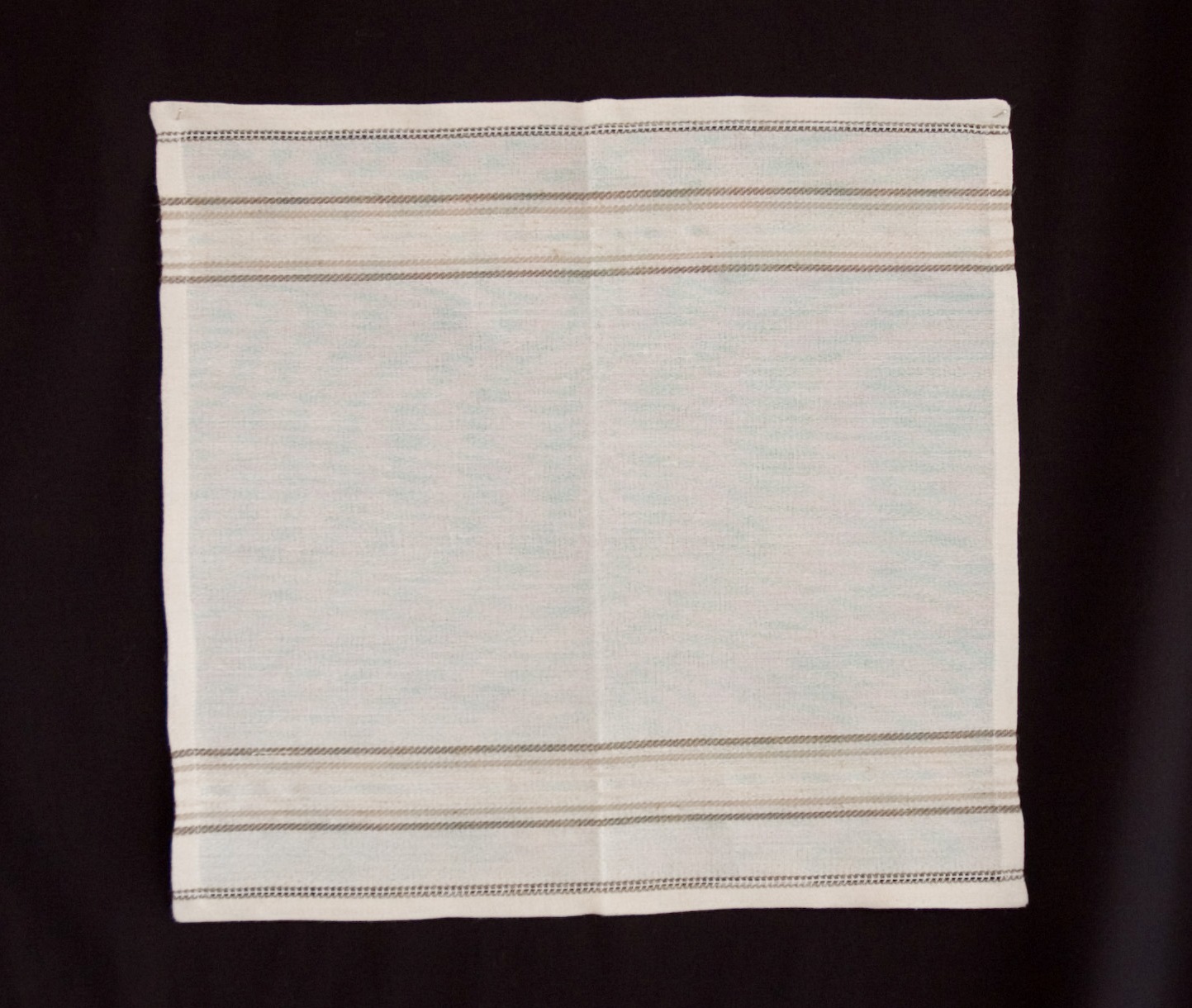 | Tárgyleírás | A szalvéta két végéT sávoly csíkok díszítik, a felszegése kézi azsúrral történt. | |||