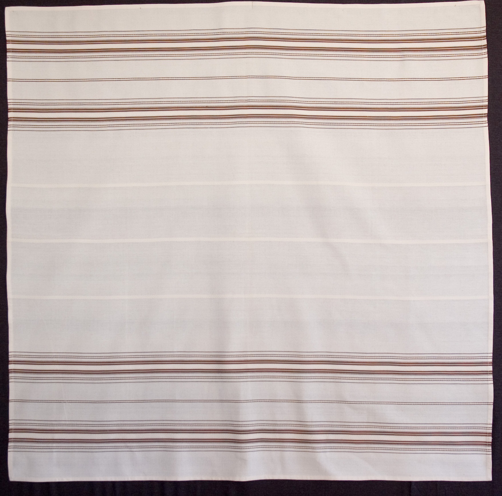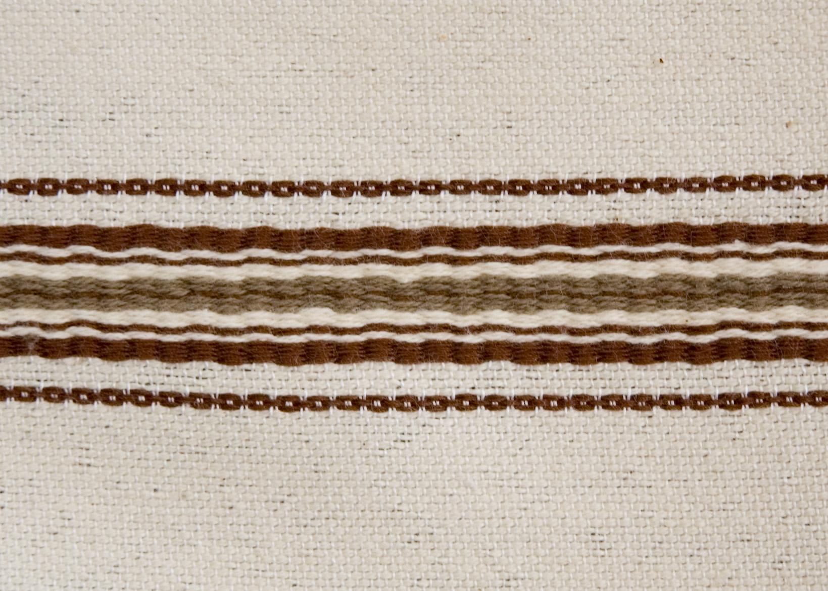 | Tárgyleírás | Az abrosz két szélén erősebben, majd középen szellős felületet biztosító,vászon alapú, eltérő vastagságú fogazott ripsz-csíkokkal díszített használati tárgy. | |||