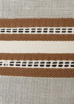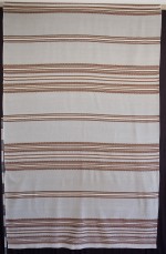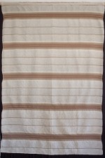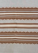 | Tárgyleírás | A len alapon készült száda a palóc derékaljak csíkritmusát dolgozza fel. A színárnyalatokat tükröző díszítményt kedkeny rozmaring csíkkal emeli ki. Az ismétlődő fő motívumokat vékonyabb ripsz csíkokkal választja el az alkotó. | |||