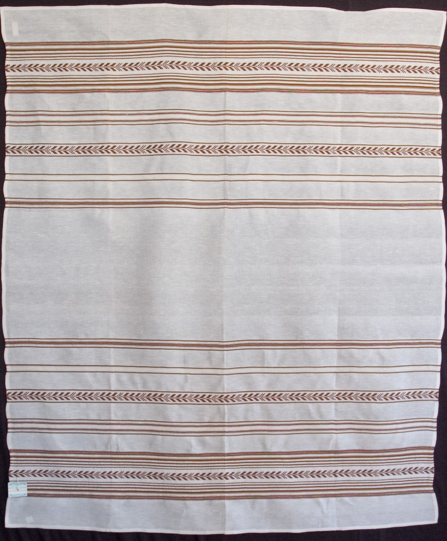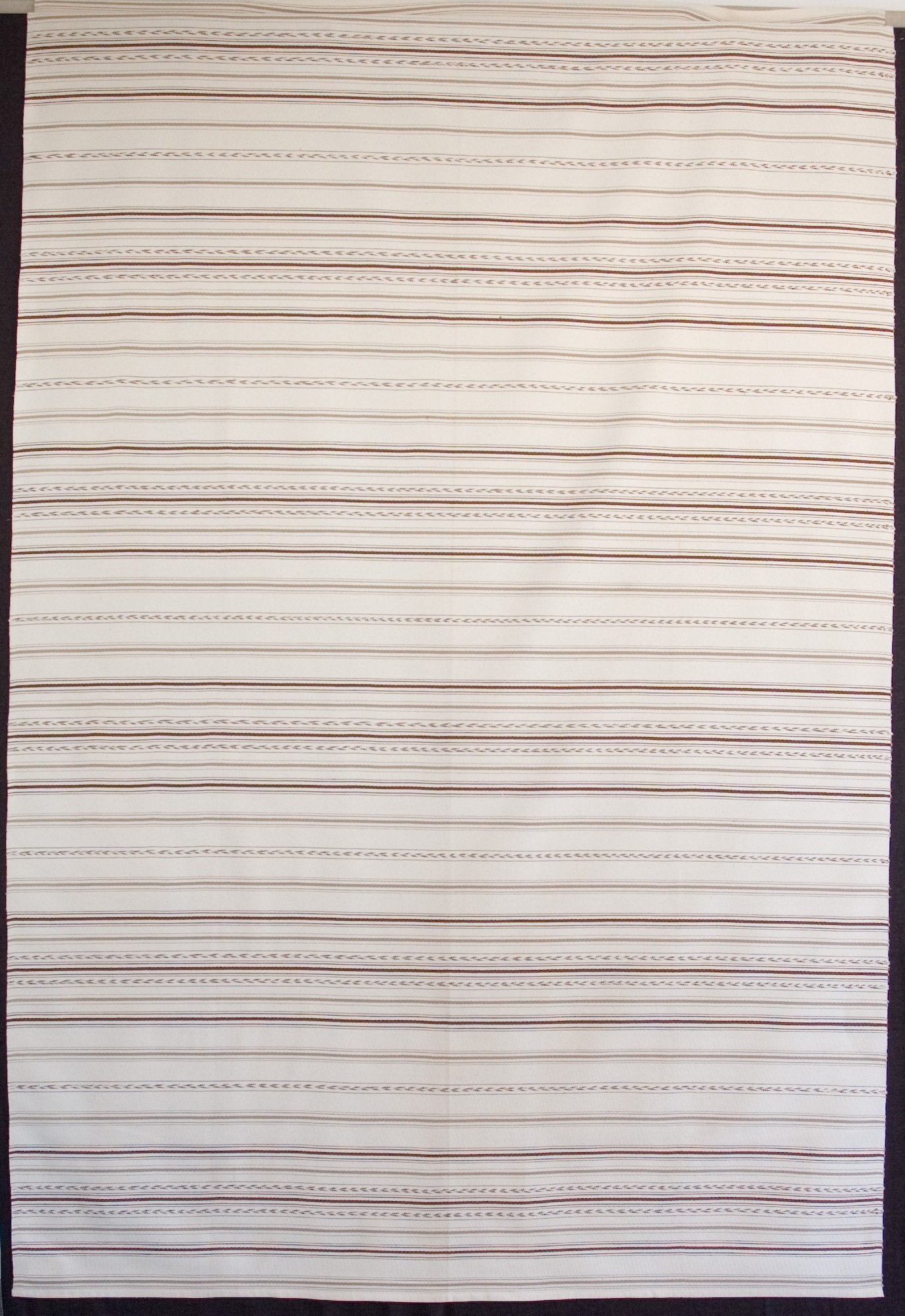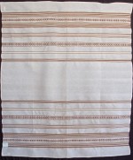 | Tárgyleírás | A szélén súlyosabban díszített, befelé elfogyó, ripsz csíkok között megjelenő, átányi szedett rozmaringgal díszített abrosz. | |||