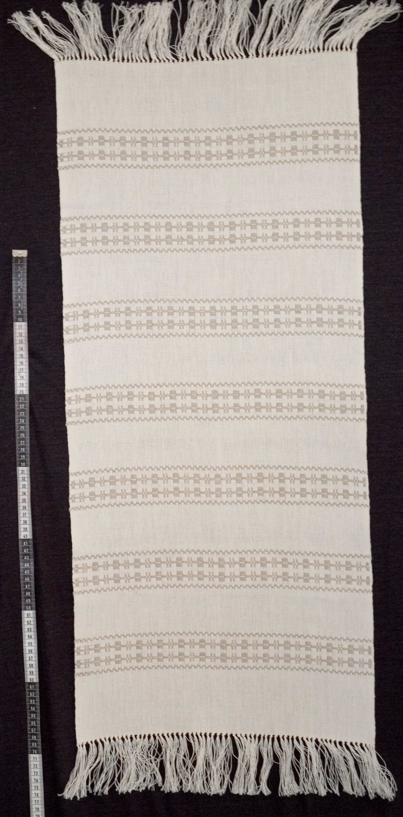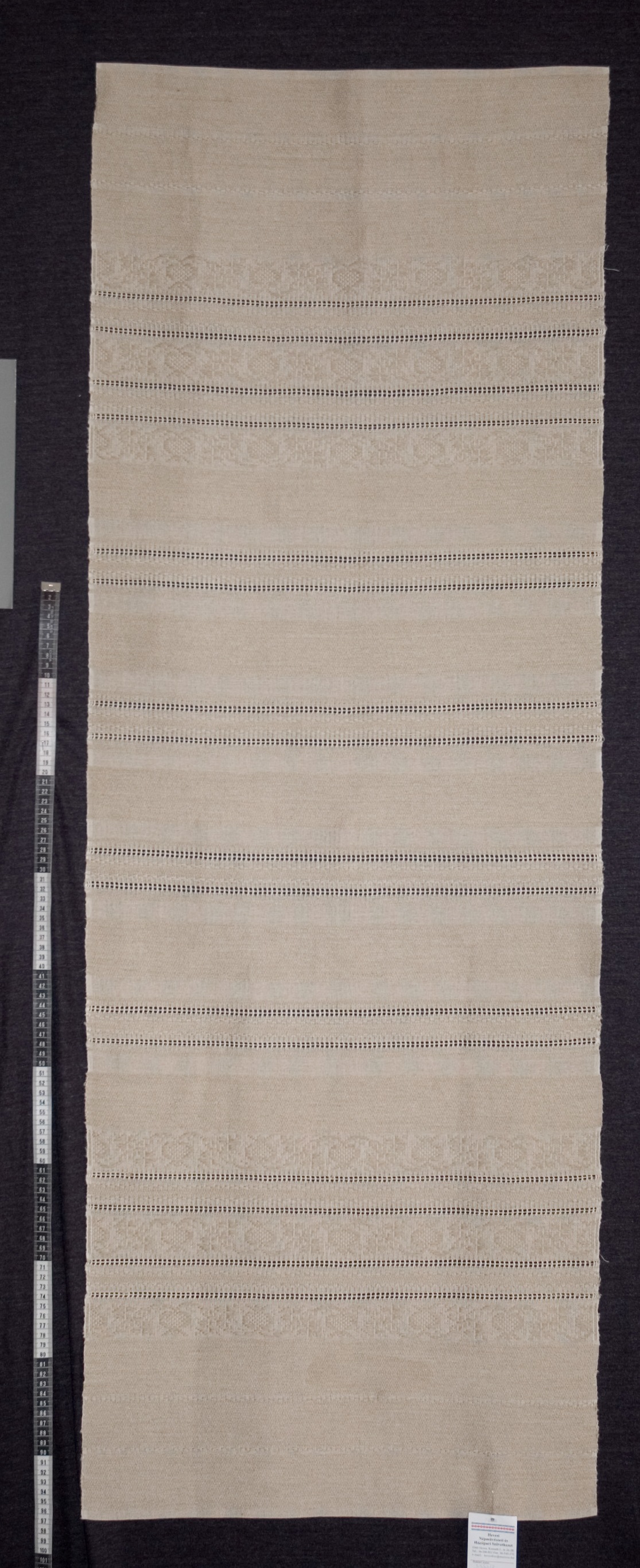 | Tárgyleírás | A futót lépett minta és ripsz csík, végén kötözött rojt díszíti. | |||