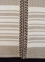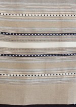 | Tárgyleírás | A lenszáda felületét szürke-nyers szatén csíkok és sötétkék lépett minták díszítik. | |||