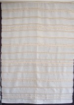 | Tárgyleírás | Az alkotás szélét szimmetrikusan díszítő, a len színárnyalataiból álló szélesebb csík-minta a felületen visszafogottan, a használati funkciót erősítve jelenik meg. | |||
