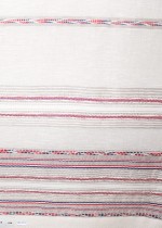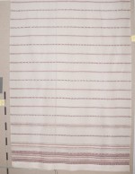 | Tárgyleírás | Két végén ripsz csíkokkal szegélyezett, csavat rozmaringgal hangsúlyosan díszített abrosz, amelynek a felülete keskenyebb csíkokkal és csavart rozmaringgal tagolt,a palócság jellegzetes piros-kék színvilágát megjelenítő díszabrosz. | |||