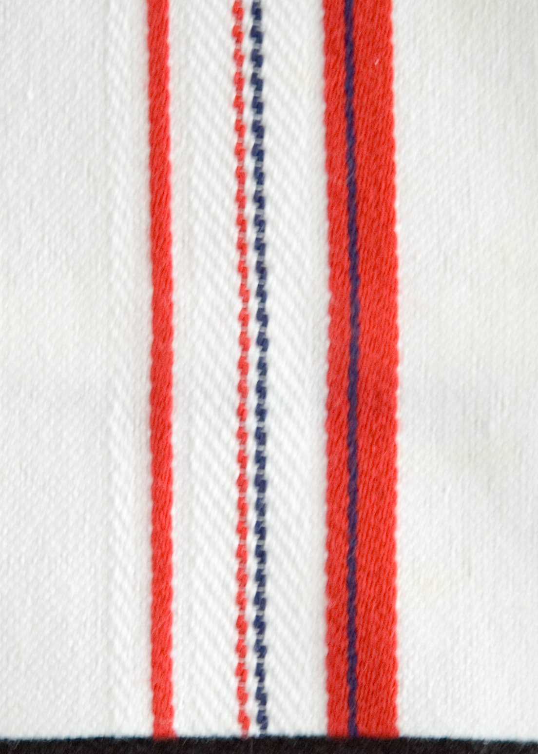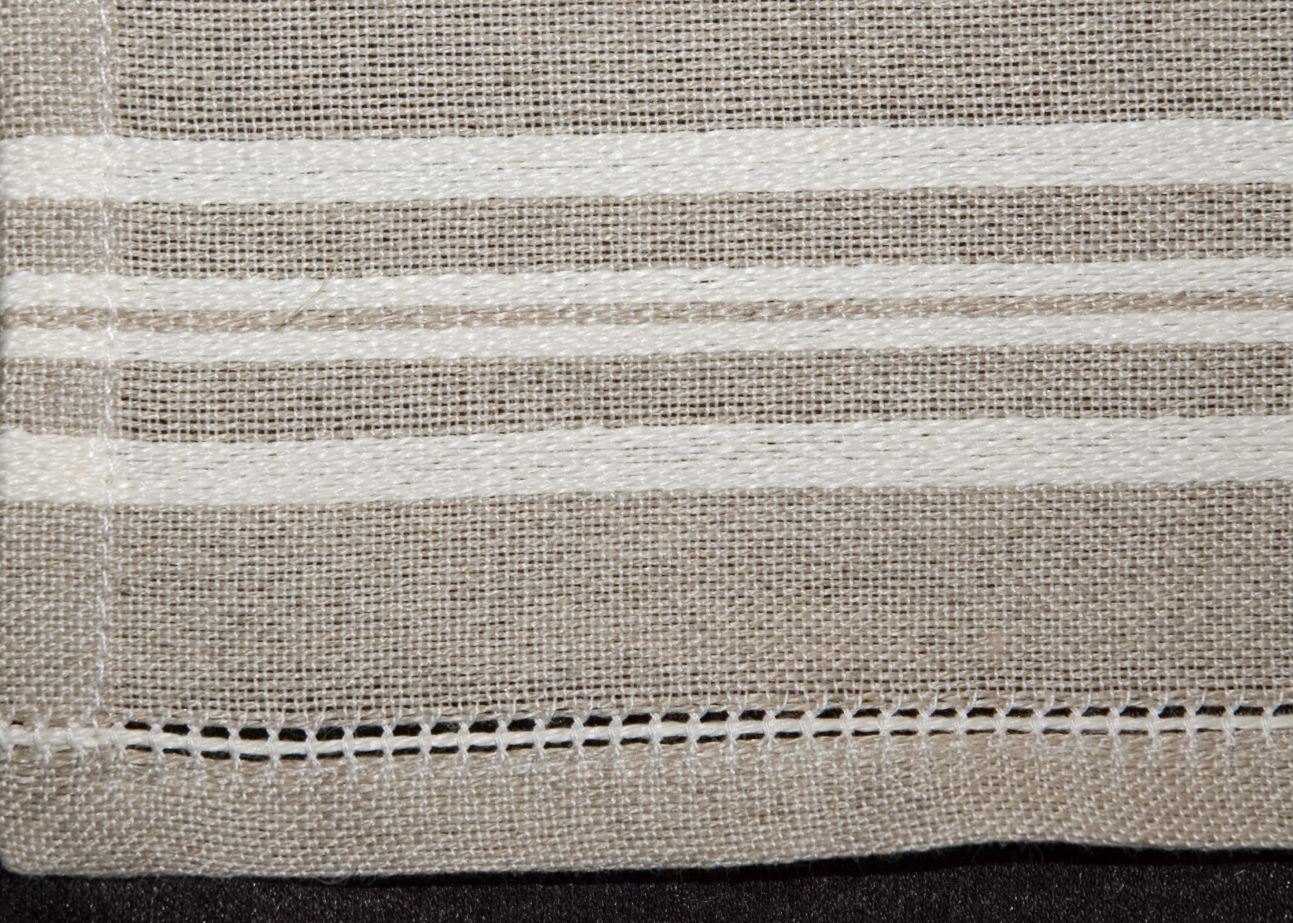 | Tárgyleírás | A szalvéta két oldaát 3-3 sávoly csík díszíti. A szegése azsúrral történik. | |||